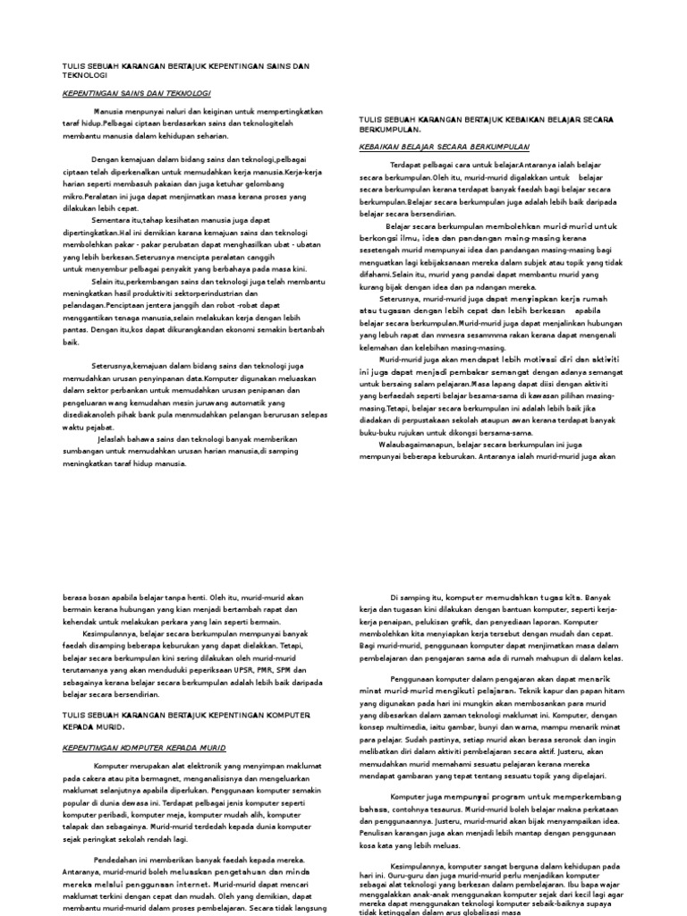 Tulis Sebuah Karangan Bertajuk Kepentingan Sains Dan Teknologi Pdf