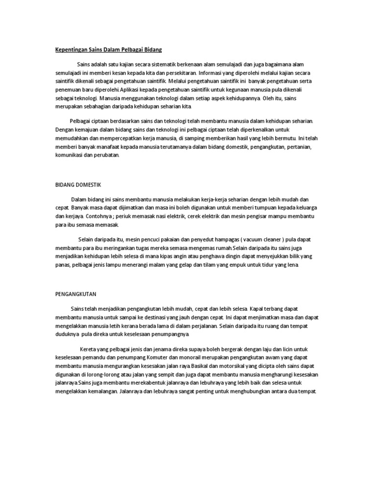 Kepentingan Sains Teknologi Dalam Pelbagai Bidang Pdf